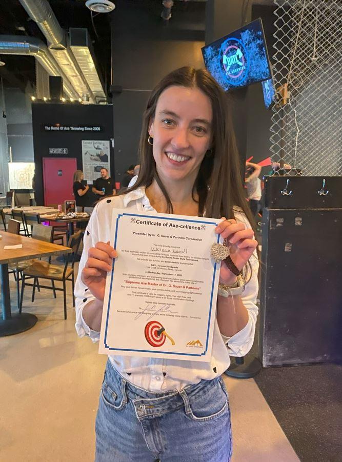 Congratulations go to Viktoria Lendl, our reigning axe-throwing champion who hit the mark and walked away with the top spot!